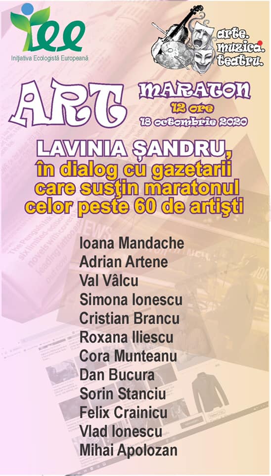 Prima pagină » Cultură » Maratonul de artă organizat de Lavinia Șandru: ”Un semnal de alarmă tras de peste 60 personalități culturale”
