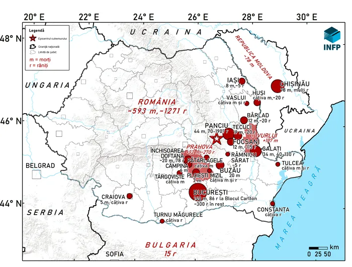Sursa: „Harta cutremurelor din România, în perioada 1900-2014”, Dragoş Toma-Dănilă, cercetător ştiinţific în cadrul Institutului Național de Cercetare-Dezvoltare pentru Fizica Pământului