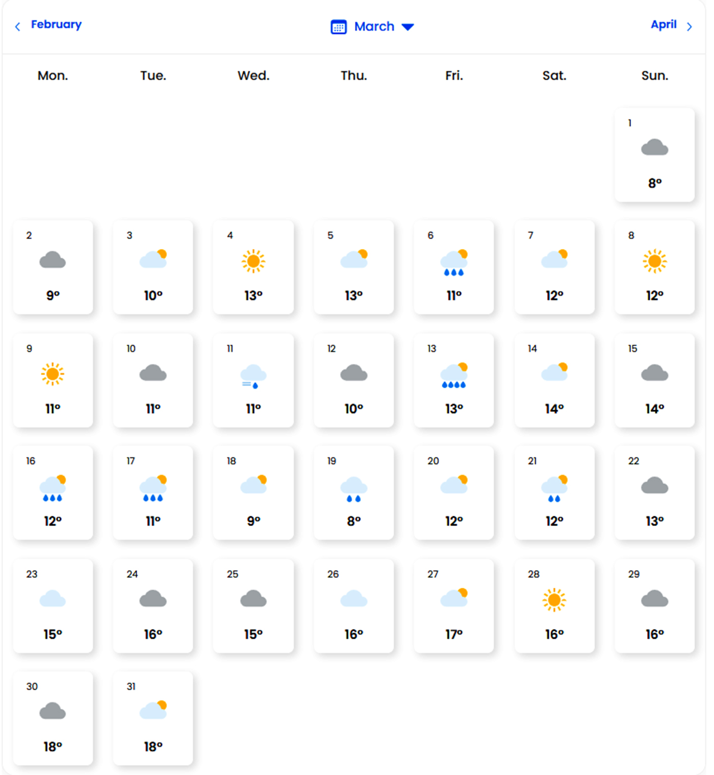 Meteorologii EaseWeather au emis prognoza meteo pentru primăvara anului viitor, pentru București și celelalte orașe din țară. La o scurtă atenție asupra prognozei pot fi observate temperaturile maxime care se vor înregistra în luna martie 2026. De exemplu, în București, pe timpul zilei se vor înregistra între 8 și 18 grade Celsius. Vor fi și zile în care se vor înregistra precipitații: 6, 11, 13, 16, 17, 19 și 21 martie 2026.