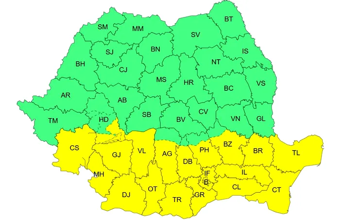 Cod galben de ninsori, viscol în mai multe zone din țară / județele afectate, potrivit meteorologilor. Sursă: ANM
