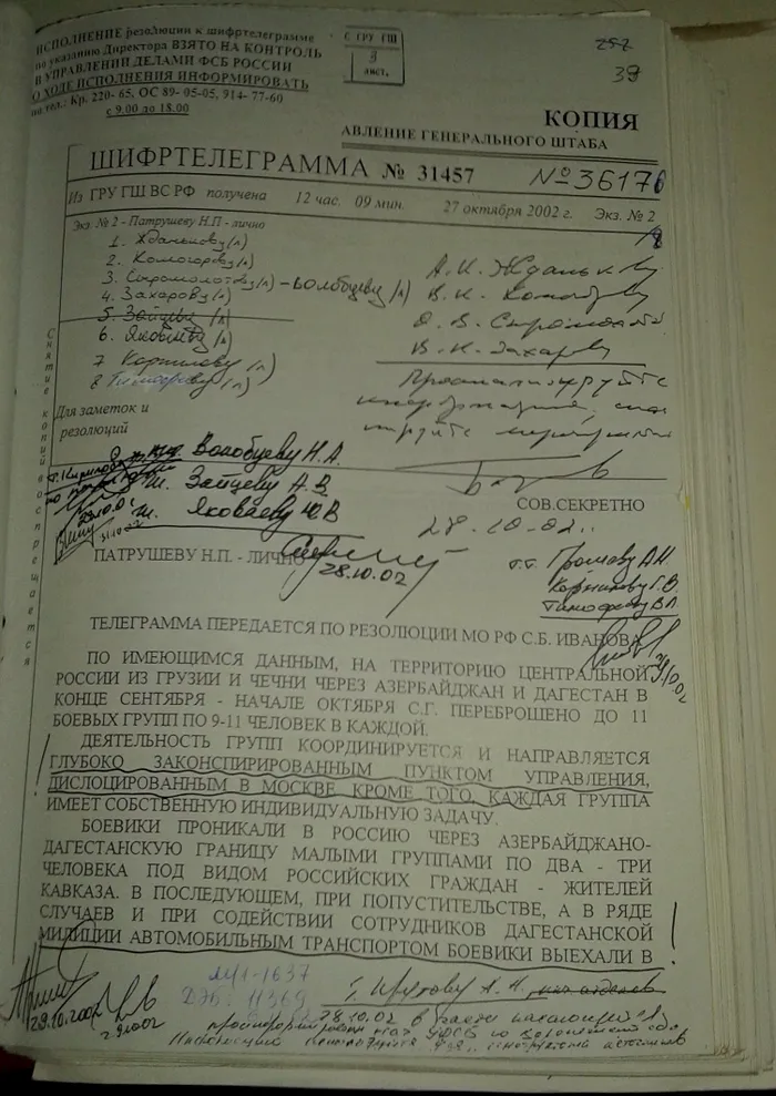 Telegramă cifrată clasificată către Patrușev de la GRU | Sursa – The Insider