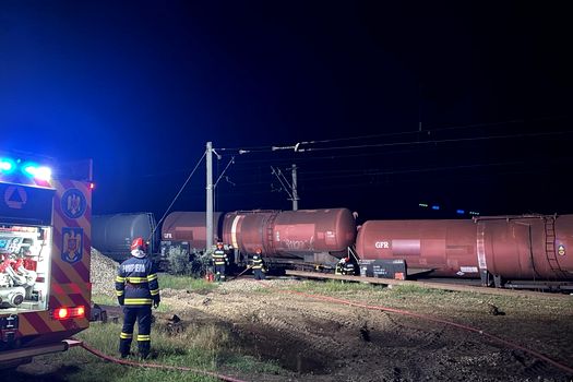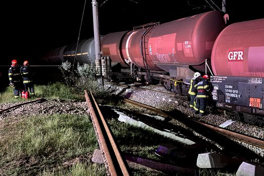UPDATE: Cele 33 de vagoane ale trenului, care nu au deraiat și nu au fost avariate, au fost preluate, la ora 13:00, cu o locomotivă diesel, sosită de la Giurgiu, și îndepărtate de zona incidentului, în condiții de siguranță.