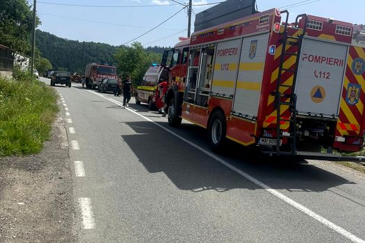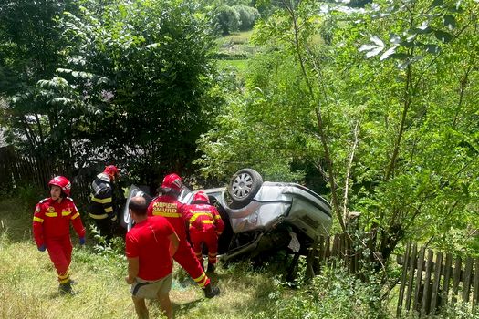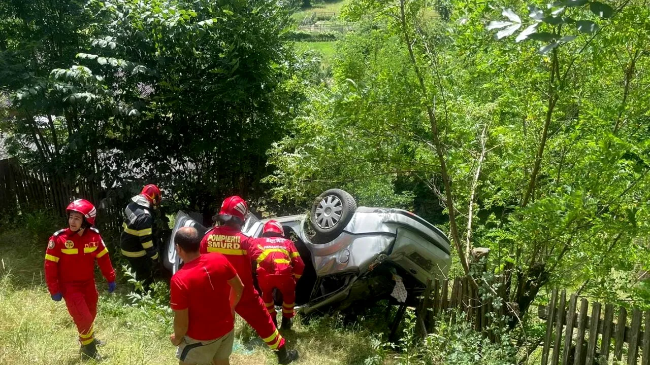 Intervenția este una dificilă deoarecere autoturismul se află într-o râpă. Persoanele au fost evacuate din autoturism de către pompierii militari și predate echipajelor medicale.