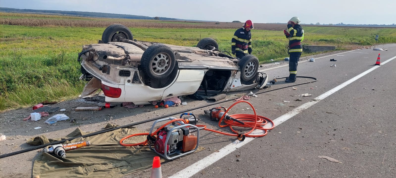 Ajunse la fața locului, forțele de intervenție au constatat că două dintre victime se aflau în stop-cardio respirator, una dintre acestea fiind proiectată în afara mașinii, iar cealaltă încarcerată”, informează ISU Bihor.