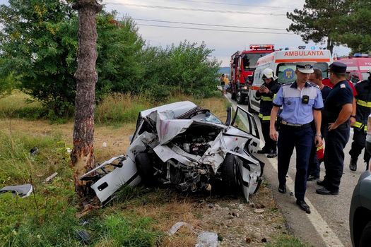 „În această dimineață am fost solicitați să intervenim pentru gestionarea unei situații de urgență generată de un grav accident de circulație produs pe raza localității Pojogeni în care a fost implicat un autoturism care a lovit frontal un copac.