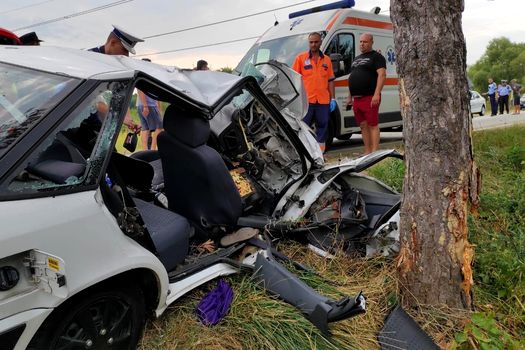O mașină s-a izbit cu putere de un copac aflat pe marginea drumului, iar în urma accidentului o femeie a murit, iar un bărbat se zbate între viață și moarte.