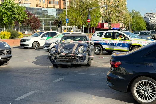 Accident grav într-o intersecție circulată din București. Două autoturisme s-au izbit frontal în intersecția 13 Septembrie cu Șoseaua Panduri.