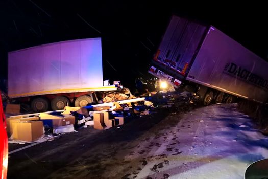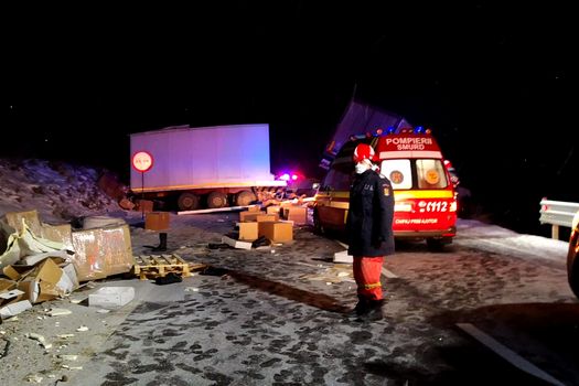 „Pe fondul adormirii la volan, un tir a lovit din spate remorca unui alt autotren. În urma leziunilor suferite, șoferul responsabil pentru accident a decedat”, au anunțat polițiștii.