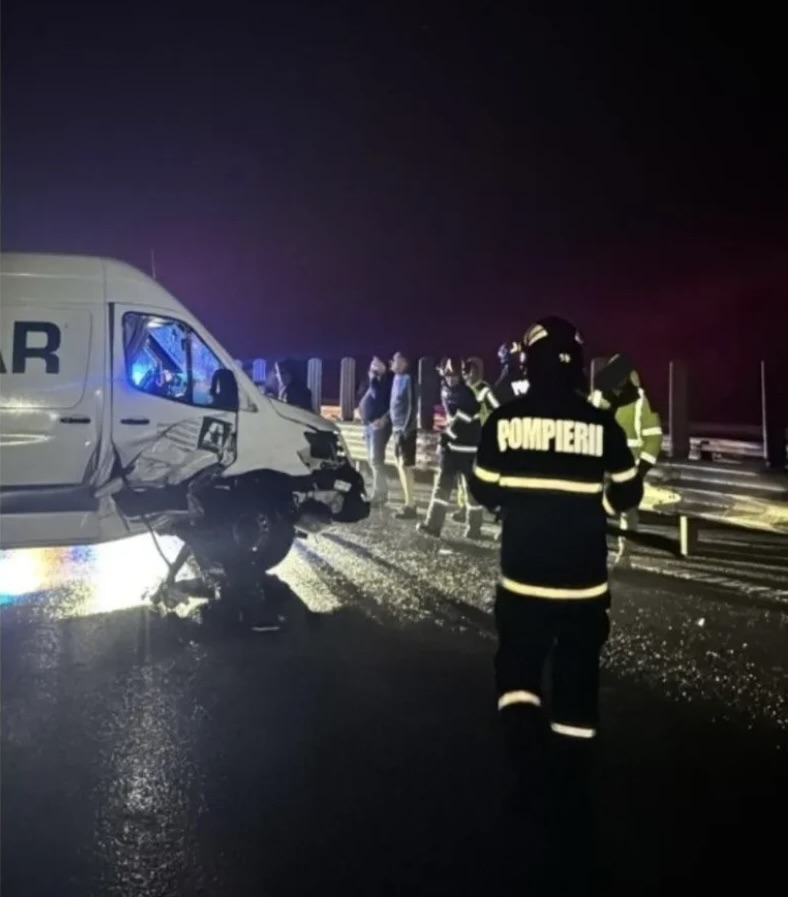 Un accident rutier produs în noaptea de miercuri spre joi, pe Autostrada A1, în județul Timiș, a mobilizat de urgență echipajele de intervenție. Două microbuze, unul de persoane și unul de marfă, s-au izbit, iar cinci victime au fost transportate la spital.