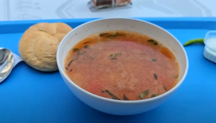 Vloggerul a analizat și gustul ciorbei. Spune că, la prima mână, fără să o dreagă, ciorba are gust, dar și perișoarele. Însă chifla nu l-a dat gata, considerând-o veche.
