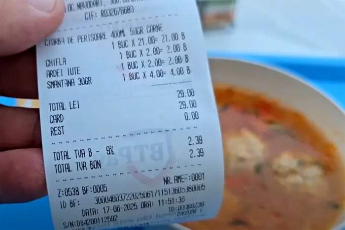 Vloggerul a conchis dând și o notă ciorbei pe care, cu totul, a plătit 29 de lei.