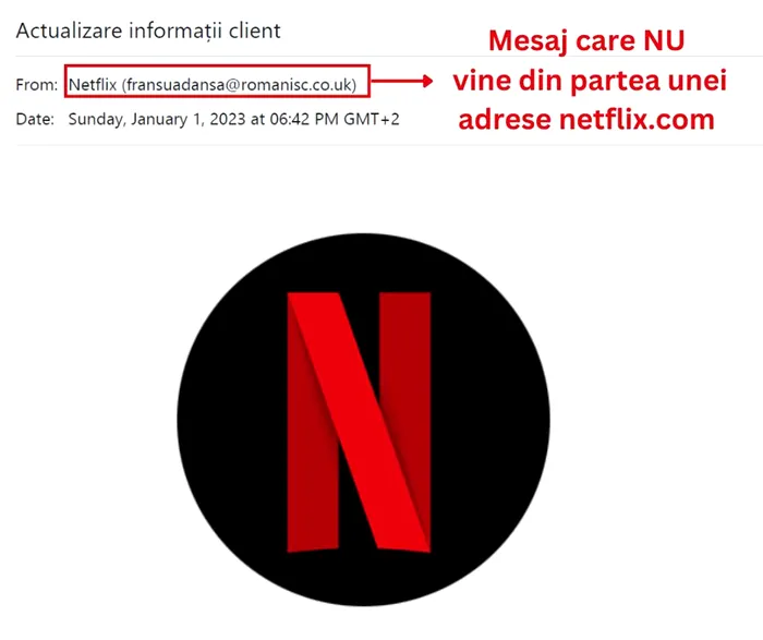 „Ai primit un e-mail, sau poate chiar un SMS de la Netflix, prin care ești notificat că trebuie să-ți ‘actualizezi informațiile de client’? Ai grijă! În spatele inițiativei sunt infractori cibernetici care vor să-ți fure datele de autentificare.