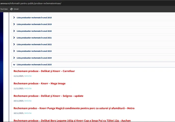 Ultima actualizare pe site-ul ANVSA este din 11 noiembrie, în condițiile în care alerta europeană a fost emisă pe 14 noiembrie