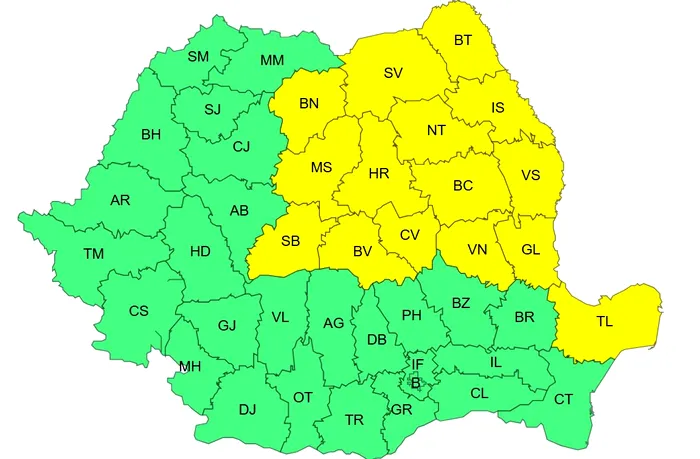 Administrația Națională de Meteorologie transmite că a fost emis un cod galben de vânt puternic pentru mai multe zone din țară. Codul galben este valabil pentru ziua de duminică, 24 august 2025, în intervalul orar 10:00 – 20:00.