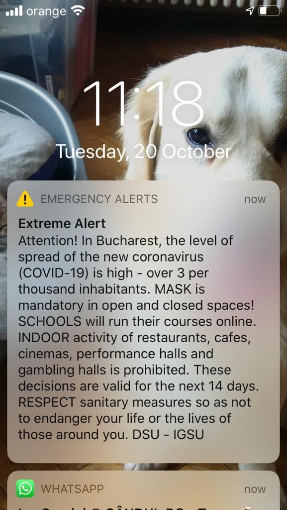 Mesajele vin după ce, luni, Comitetul Municipiului București pentru Situații de Urgență a constatat, în cadrul ședinței de luni, depășirea pragului de incidență de 3 cazuri la mia de locuitori și aplicarea măsurilor care se vor aplica, respectiv purtarea obligatorie a măștilor în toate spațiile deschise, trecerea școlilor în scenariul roșu și suspendarea activității, pentru următoarele 14 zile, în restaurantele, cafenelele, teatrele, cinematografele și sălile de jocuri de noroc din Capitală.