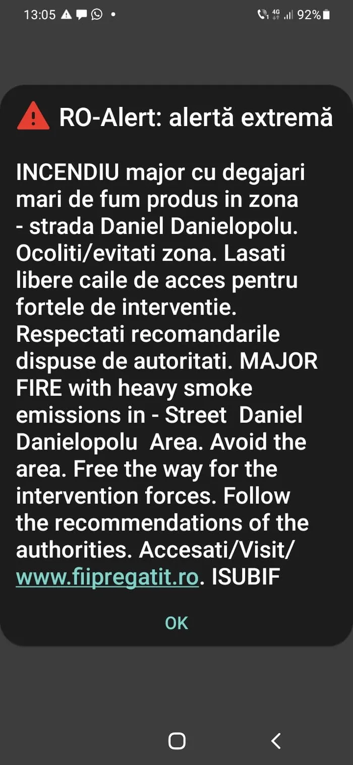 Oamenii care locuiesc în zonă au primit mesaje Ro-Alert.
