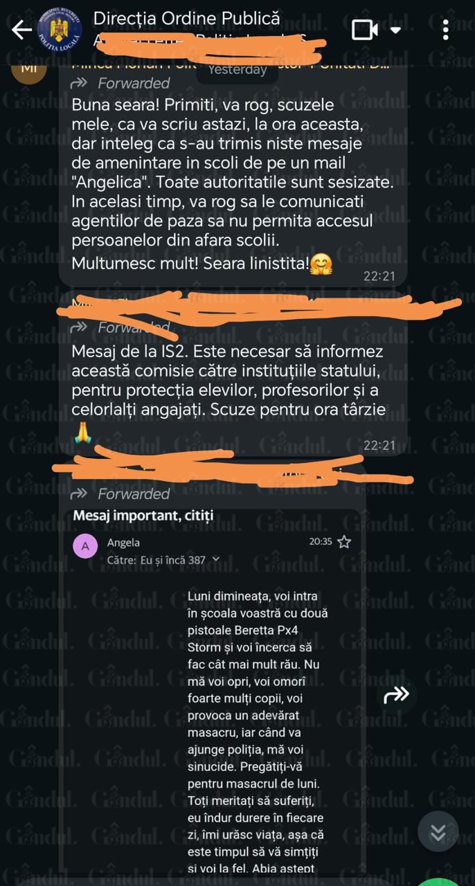 Un email anonim, expediat duminică seara către Inspectoratul Școlar al Sectorului 2, a declanșat o alertă majoră în unitățile de învățământ din București. Autorul mesajului a anunțat că intenționează să comită un masacru asupra elevilor.