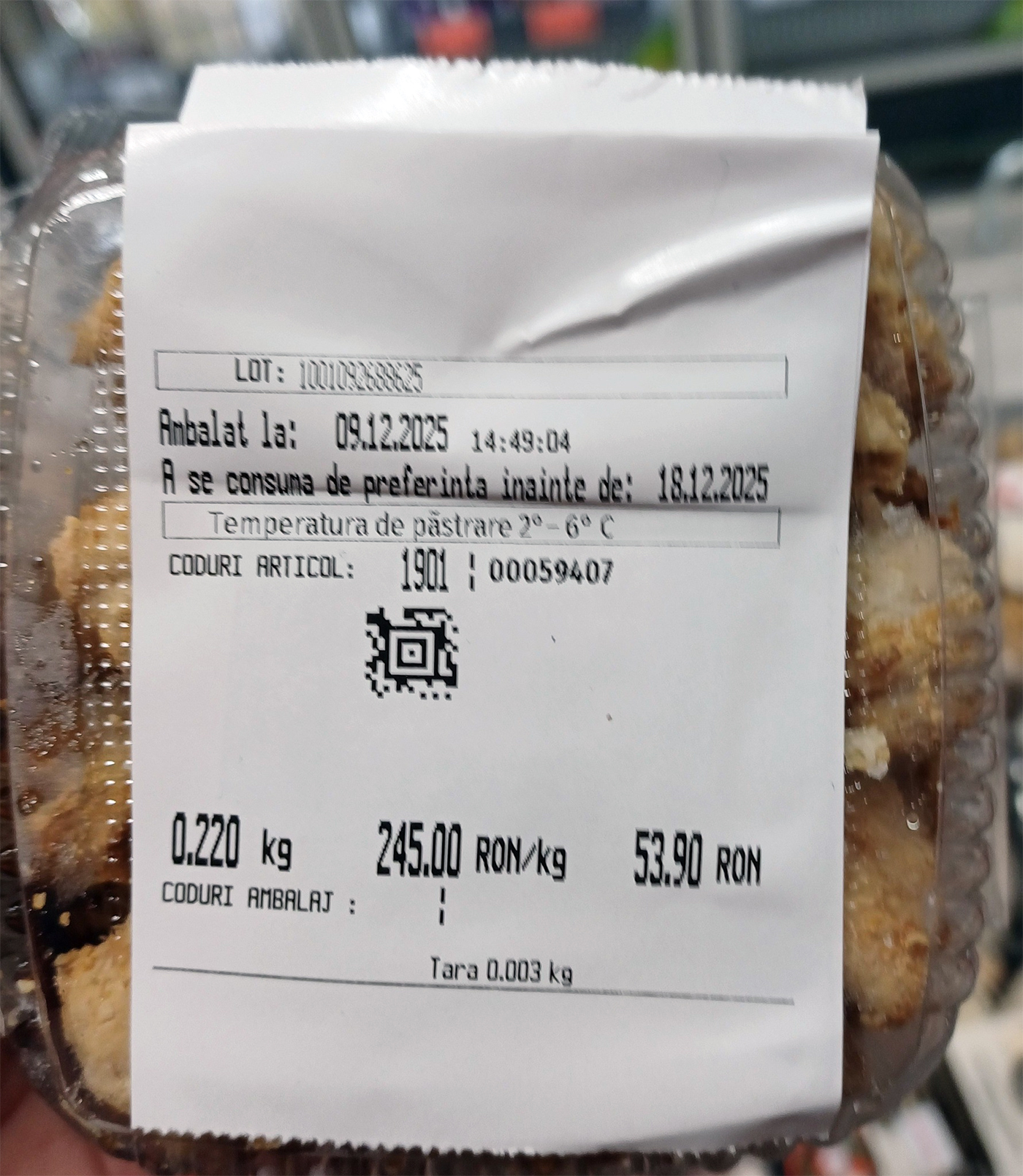 Cum se vede în fotografie, acest produl de lux, nici măcar nu poate fi consumat de Crăciun, recomandările producătorului fiind să-l executăm în plin post.