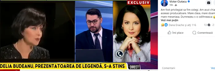 Jurnalistul Victor Ciutacu a postat și el un mesaj, după trecerea în neființă a Deliei Budeanu, recunoscând că se simte privilegiat că au fost, cândva, colegi.