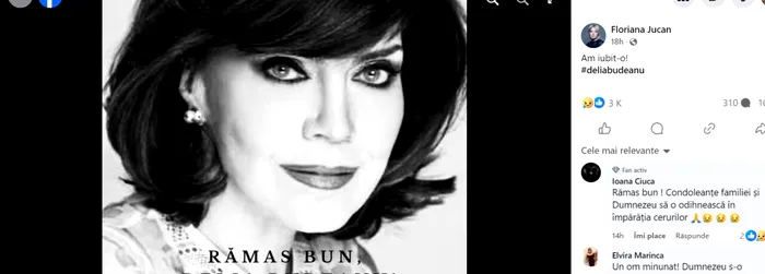 Jurnalista Floriana Jucan a scris simplu, pe pagina de facebook, un mesaj de suflet și o recunoaștere publică a respectului și a iubirii pentru cea care a fost Delia Budeanu: „Am iubit-o!”
