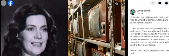 În ultimii ani, a fost o prezență discretă și nu a mai apărut atât de des în lumina reflectoarelor. Dumnezeu să o odihnească în pace! Condoleanțe și putere familiei!”, este mesajul postat de Gabriela Firea.