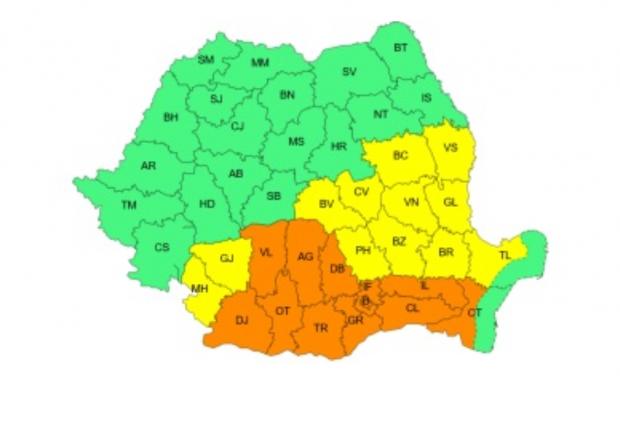 Administraţia Naţională de Meteorologie (ANM) a emis, vineri, o avertizare cod portocaliu de caniculă, valabilă până sâmbătă dimineaţa, în 13 judeţe şi în Bucureşti, dar şi un cod galben căldură extremă pentru alte 12 judeţe.