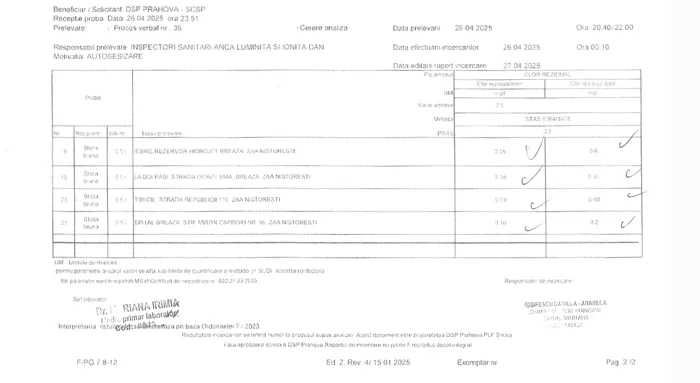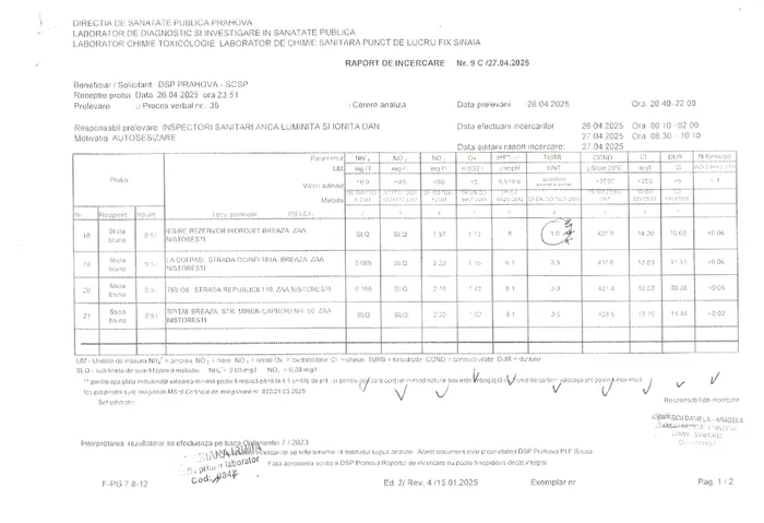 – În colaborare cu autoritățile competente, au fost recoltate probe de apă din mai multe zone ale orașului, acestea fiind transmise către laborator pentru testarea parametrilor de calitate.