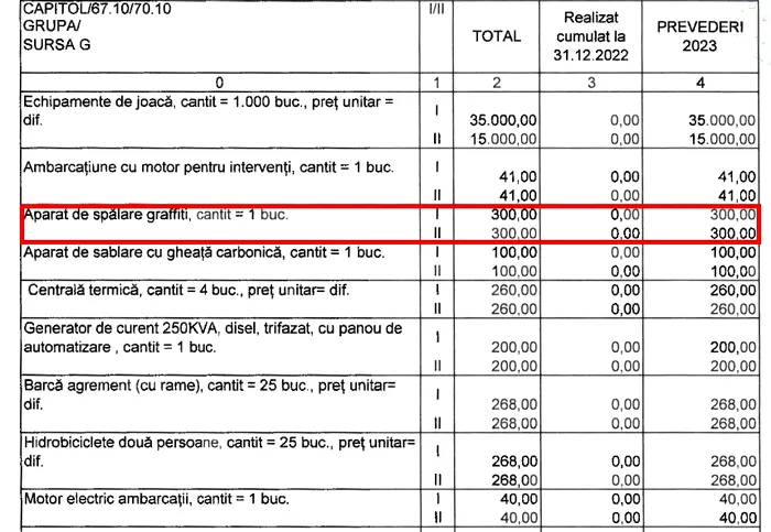 De asemenea, administrația care se ocupă de parcurile bucureștene vrea să achiziționeze un aparat de „spălare graffiti” cu suma de 300 de mii de lei.