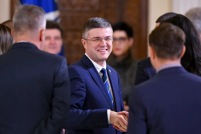 Irineu Darau, ministrul Economiei, Digitalizarii, Antreprenoriatului si Turismului, este felicitat dupa ce a depus juramantul de investitura in functie, in prezenta presedintelui Nicusor Dan, in cadrul unei ceremonii desfasurate la Palatul Cotroceni, marti, 23 decembrie 2025. ALEXANDRU DOBRE / MEDIAFAX FOTO