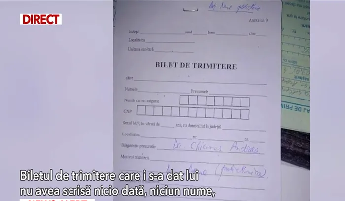 ”Biletul de trimitere care i s-a dat lui nu avea scrisă nicio dată, niciun nume, doar jos în dreptul parafei erau scrise două nume de medici, unul care intra de gardă a doua zi și numele unui medic care era de gardă la Policlinica Urziceni.