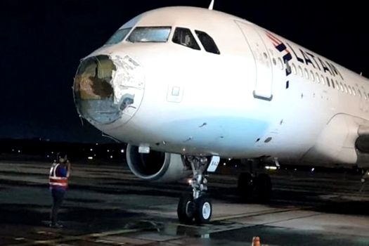 O aeronavă Airbus A320 a companiei LATAM (din Chile) a efectuat o aterizare de urgență, după ce geamurile cabinei piloților au fost avariate atât de rău încât au început să crape. Mai mult, botul avionul a fost complet distrus.