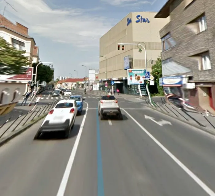 Pentru cei care nu sunt din Brașov, este vorba de o stradă cu trei benzi pe sens unic. După cum se vede foarte clar în imaginea capturată de pe Google Maps, banda din stânga este destinată virajului la stânga, banda din mijloc este pentru direcția înainte, iar banda din dreapta este pentru direcția înainte și la dreapta.