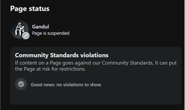Concomitent, am primit o notificare pe aplicație cum că unul dintre videoclipurile noastre ar încălca regulile de proprietate intelectuală, dar în mesajul pe care l-am primit când am încercat să accesăm pagina nu a fost menționat motivul pentru care pagina a fost suspendată.
