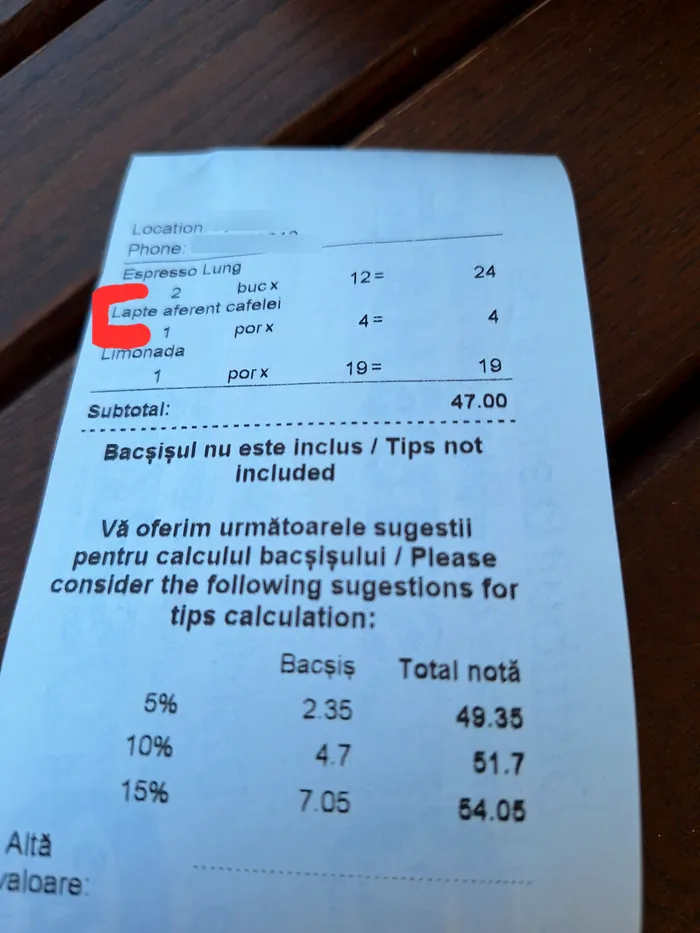 Iată cât a plătit un turist pentru 20ml de lapte pentru cafea, într-un local din Vama Veche. Prețul afișat pe bonul fiscal a stârnit o serie de reacții din partea utilizatorilor, în mediul online.