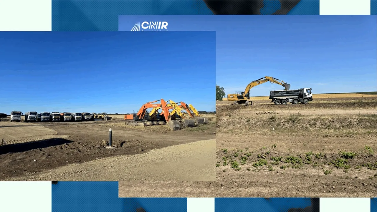 În prima zi, constructorul este bine mobilizat în șantier, cu peste 120 de utilaje și echipamente :