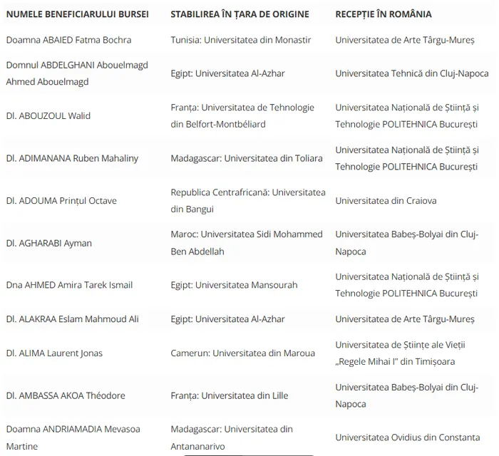La apelul lansat în octombrie 2025 au fost depuse 305 candidaturi. În urma evaluării realizate de experți din universitățile românești, au fost selectați 120 de candidați din 19 state francofone, printre care Benin, Camerun, Congo, Coasta de Fildeș, Senegal, Tunisia, Maroc sau Egipt.