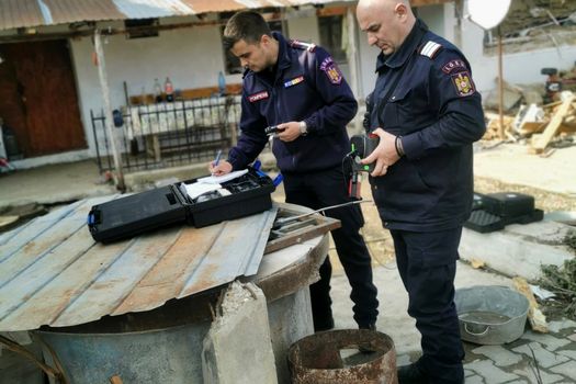 Pompierii din cadrul ISU Dolj fac măsurători privind eventuale emanaţii de gaze naturale, motivul fiind că pe proprietatea bătrânului s-a descoperit, acum doi ani, o pungă de gaze.