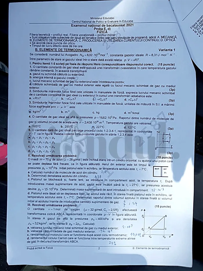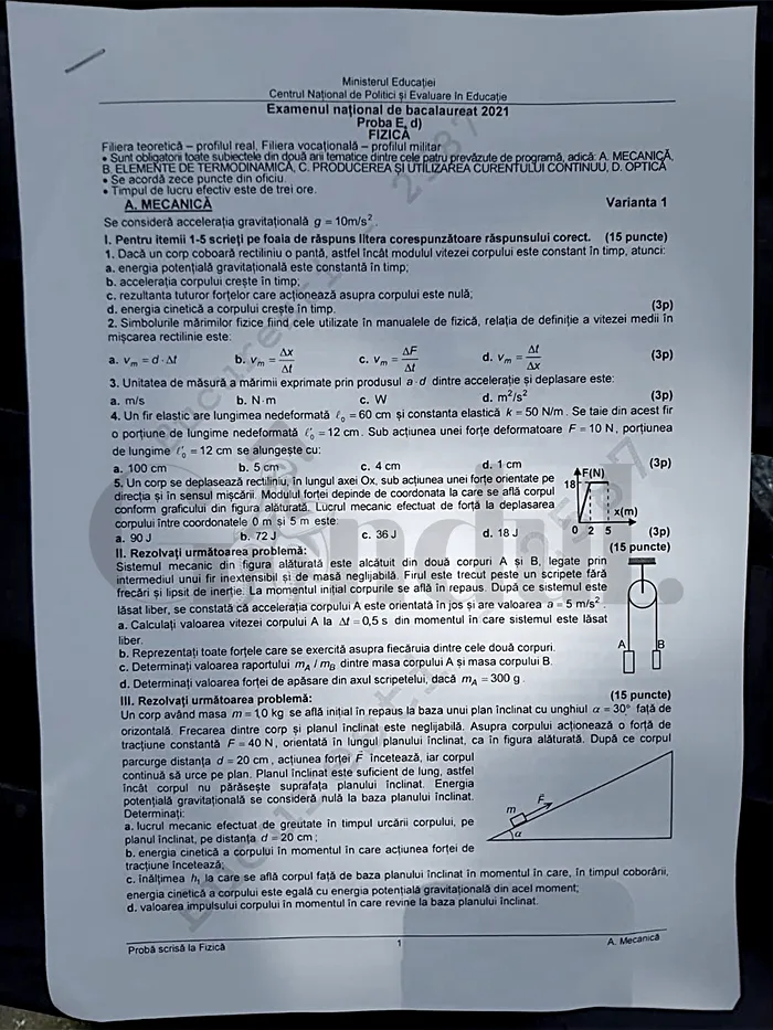 La fizică absolvenții de liceu au primit atât subiecte din mecanică, cât și din fizica optică și termodinamică.