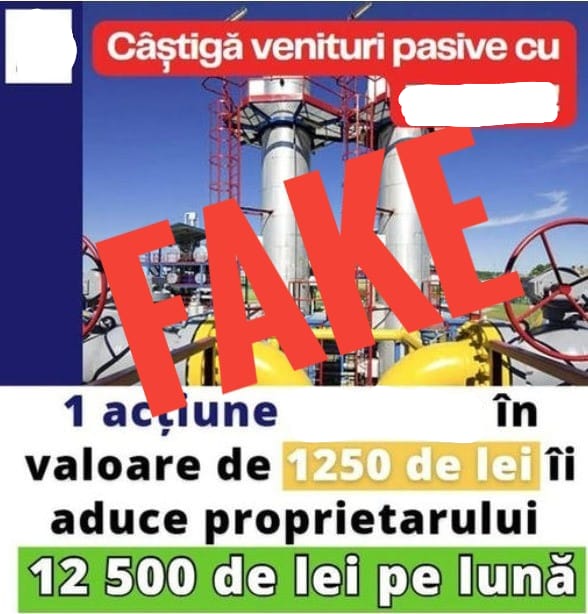 Un exemplu de astfel de anunț: „În ianuarie 2023, Parlamentul a mandatat compania… să creeze un proiect prin care cetățenii să poată folosi resursele naționale, susținute de companie, pentru a asigura un nivel de trai de calitate. Oricine poate începe să investească cu 1.200 RON, cumpărând acțiuni la companie și poate începe să câștige de la 10.000 RON în fiecare lună”.