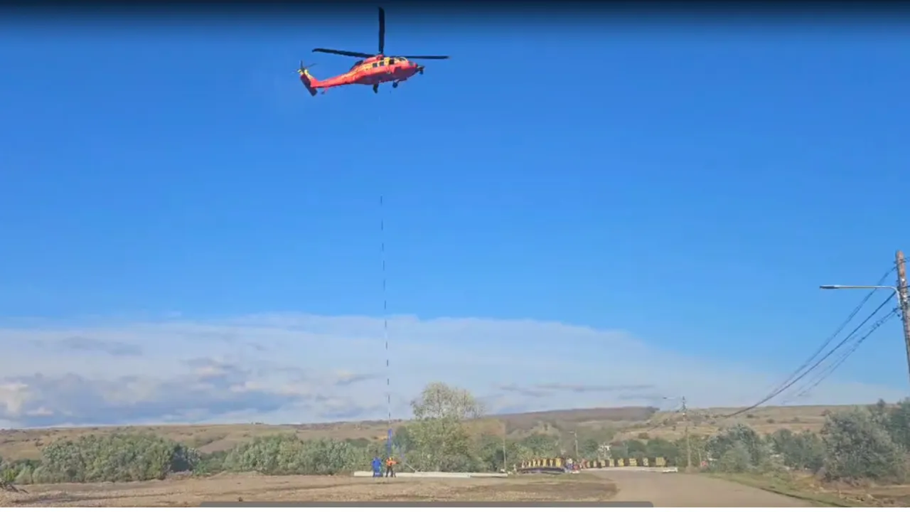 Ministerul Afacerilor Interne, prin Inspectoratul General de Aviație, desfășoară în prezent o operațiune complexă în sprijinul cetățenilor din județul Galați, afectați de inundații severe. Un elicopter Black Hawk este implicat în transportul a patru stâlpi de electricitate, fiecare având o lungime de 12 metri. Cel mai greu dintre aceștia cântărește peste un sfert de tonă, ceea ce face intervenția extrem de dificilă și de importantă pentru restabilirea infrastructurii critice.