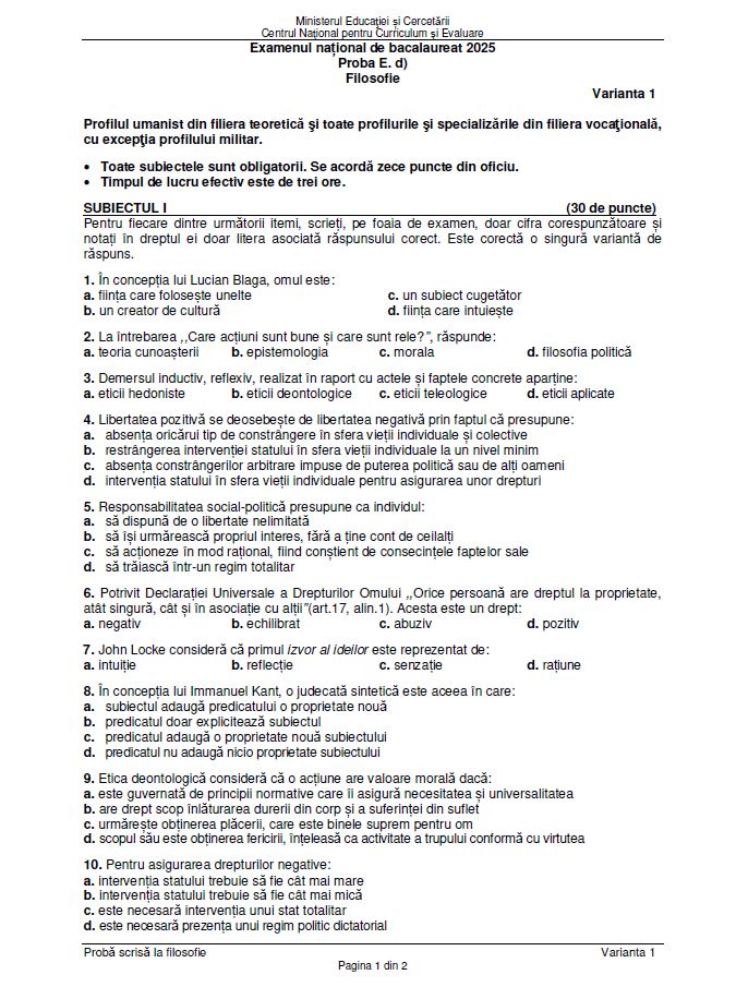 Update 13 iunie (15:55). Iată subiecte la economie, logică și filosofie.