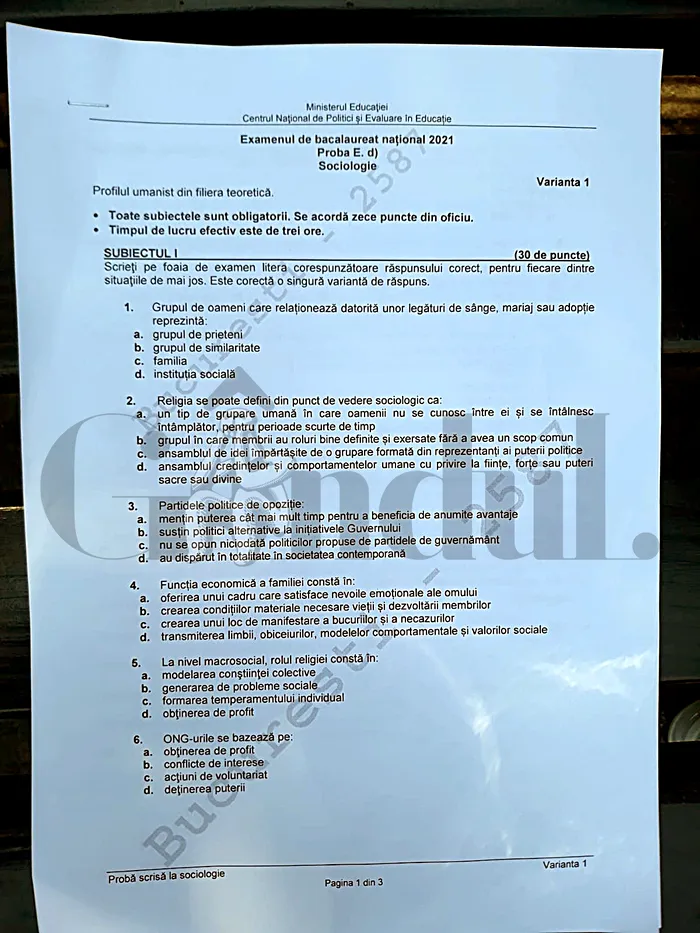 Gândul a aflat ce subiecte au primit absolvenții clasei a XII-a la proba de Sociologie de la examenul de Bacalaureat 2021, proba la alegere de la profilul uman. Candidații au avut de rezolvat cerințele de pe varianta de subiecte cu numărul 1.