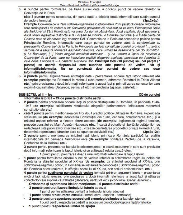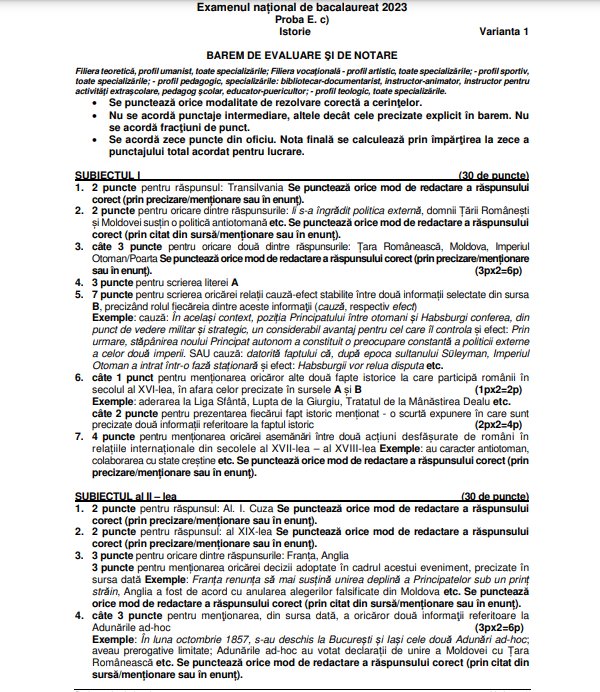 Baremul de corectare la proba de Istorie de la Bacalaureat 2023 a fost publicat pe edu.ro, începând cu ora 15:00.