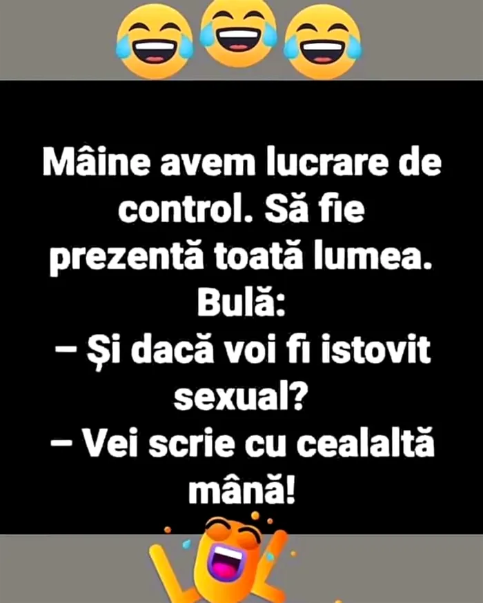 Citește bancul zilei și află cum reacționează Bulă, când e anunțat că va da lucrare de control.