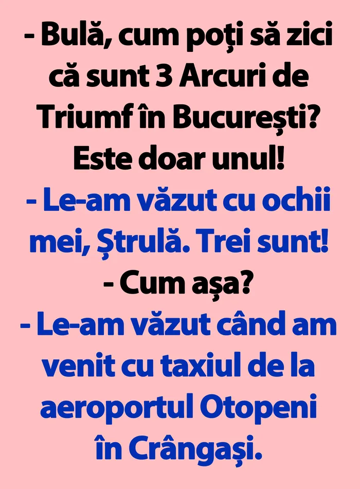 „- Bulă, cum poți să zici că sunt 3 Arcuri de Triumf în București? Este doar unul!