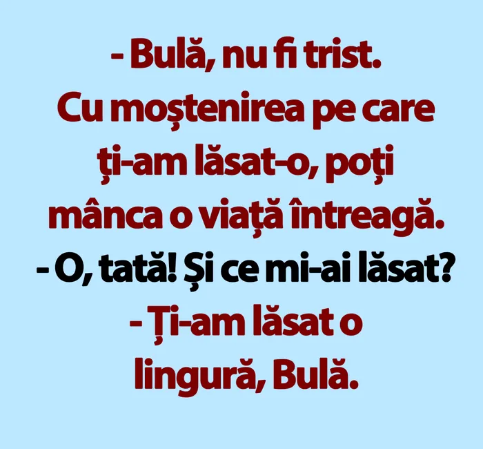 „-Bulă, nu fi trist. Cu moştenirea pe care ţi-am lăsat-o, poţi mânca o viaţă întreagă.