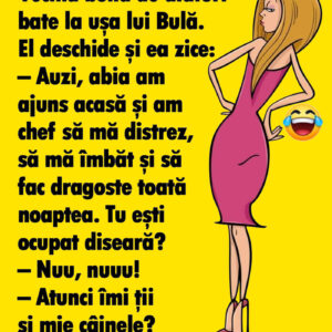 „Vecina bună de alături bate la uşa lui Bulă. El deschide şi ea zice: