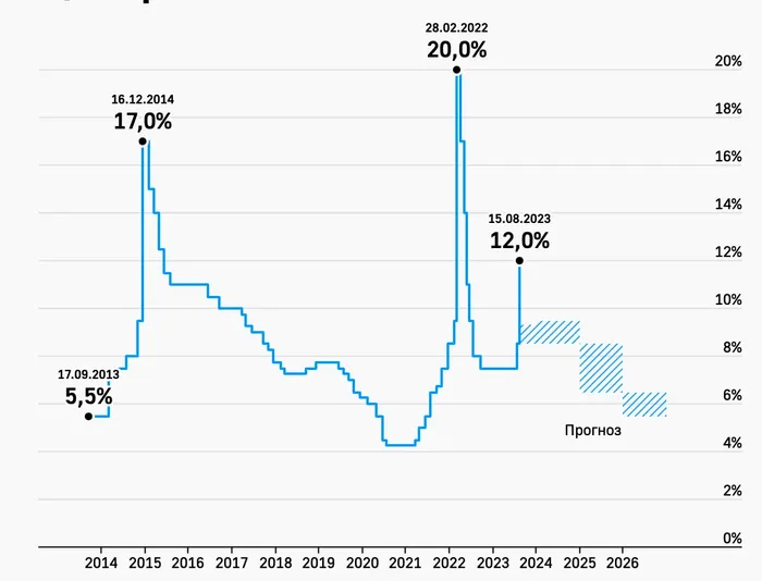 Banca Centrală a Rusiei a făcut ultima dată o majorare de urgență a ratei dobânzii la sfârșitul lunii februarie 2022, cu o creștere a ratei la 20% ca urmare a consecințelor imediate ale trimiterii de trupe în Ucraina. Banca a scăzut apoi în mod constant costul împrumuturilor la 7,5%, deoarece presiunea puternică a inflației s-a diminuat în a doua jumătate a anului 2022.