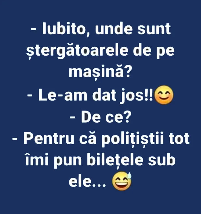 -Pentru că polițiștii tot îmi pun bilețele sub ele. „