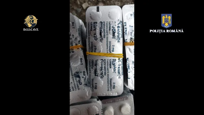 „Precizăm că Alprazolam și Clonazepam, substanțe ce se regăsesc în comprimatele de medicamente descoperite, fac parte din categoria drogurilor de risc, conform Tabelului – Anexă nr. III din Legea nr. 143/2000, privind prevenirea și combaterea traficului și consumului ilicit de droguri”, a transmis, joi, Poliția Română.